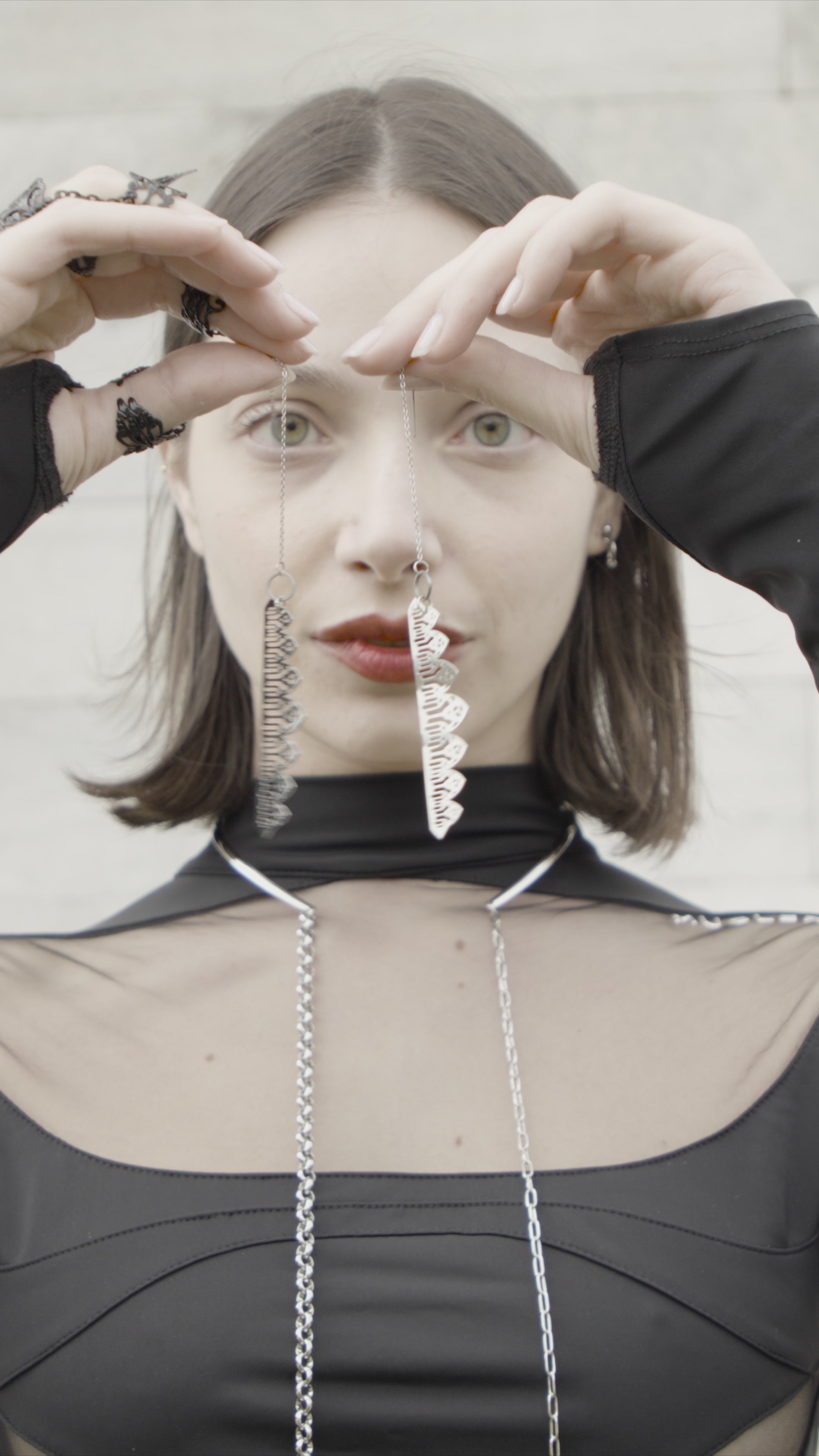 Elegant Myril Jewels Goth Threader Earrings, featuring delicate gothic arches in a filigree design. Ideal for those who favor bold neo-gothic jewelry, perfect as a goth girlfriend gift or to complement a Halloween ensemble